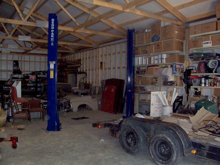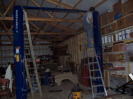 Brian purchased a new Bend Pak, http://www.bendpak.com/, 10,000 lb two-post asymmetric, ClearFloor, extra wide, lift through Automotive Service Equipment: http://www.asedeals.com/ They provided excellent technical support in answering questions as well as timely sales support in placing the order and getting it shipped. The ClearFloor options does just that...the floor between the posts clear... all of the cables, hydraulics, electrical, etc runs overhead. The extra wide option allows extra space between the posts for backing a car trailer in between the posts to load or unload a car body, junk cars, etc. The asymmetric option allows you to open the door(s) of the vehicle without hitting the posts.