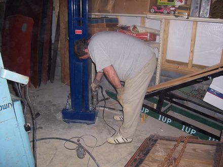 Brian later finished up the installation of the hydraulics and the electrical components and it was time to put it to the test... the first victim was Brian's old Buick... he sure wasn't going to put the Trans Am on it for the initial lift!!