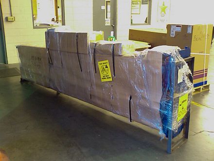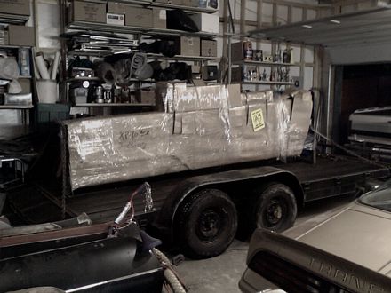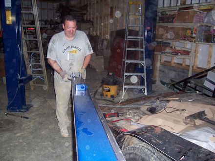 Here's Brian's new Bend Pak two-post lift sitting at the trucking terminal and in the garage after they loaded in Joe's trailer. It was a fun day to pick it up!! It was packaged very well and there was absolutely nothing missing. You can have a professional installer come and put the lift in for you, but what fun is that?? Joe and I unloaded the lift in pieces without any problem using the shop crane/engine hoist in the shop.