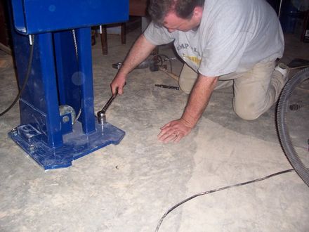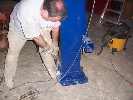 Here's a Brian cranking down the 3/4" Wejit seismic anchors that come with the Bend Pak lift.