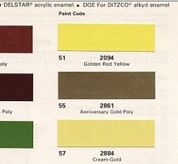 The 1976 and 1978 code 55's aren't actually the same formulation, but they look the same. One thing to be sure to avoid is 1977 Cream Gold #50. It's way too light, even lighter than the much more famous 1978 Solar Gold #50.