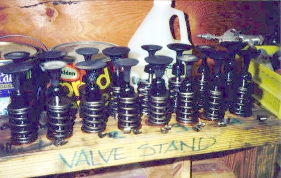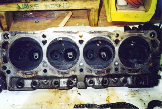 | Check out this nasty cylinder head! It had not been touched during the "rebuild!" Finding "stuff" like this after paying big bucks for a rebuild just makes you mad. The lesson to be learned here is to make sure you're getting what you're paying for. | How 'bout those valves? Do you see all of the carbon and sludge on the stems? They were not even cleaned during the last "rebuild" much less had any machining. We concluded that Joel's "rebuild" was really just rings, bearings, and gaskets. |