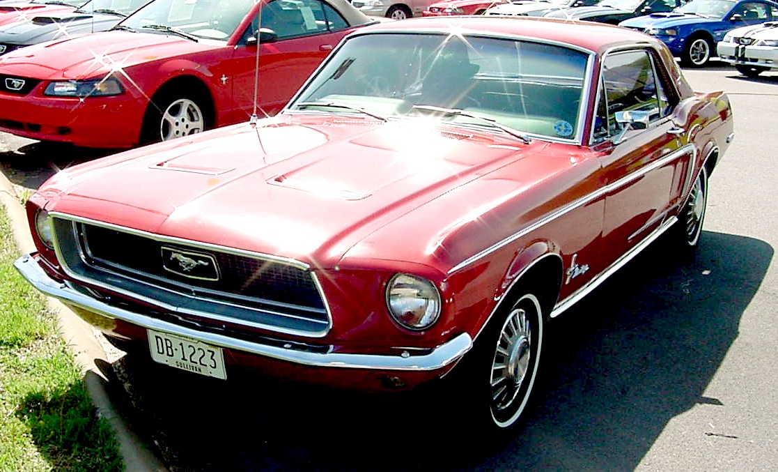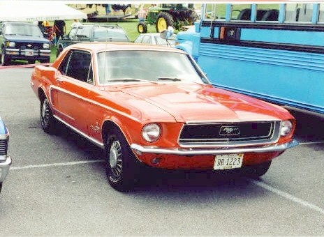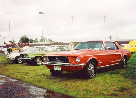 | Here's a picture of Joel's Mustang at the 1994 30th Anniversary Mustang Convention in Charlotte... but it wouldn't make it back in 1999. Joel had the 289 engine recently rebuilt locally prior to this failure. | This candyapple red 1968 Mustang Sprint is mostly unrestored and has the original paint on it!! It has red standard interior, 289 - 2bbl engine, C-4 automatic, and power steering. |