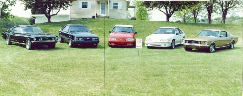 In 1988 my wife and I purchased this 1988 Mustang GT.  Ford was saying that 1988 would be the last year of the Mustang and would be replaced by the Ford Probe (thankfully they were wrong).  The picture above was our family's Mustang collection that we (my older sister, brother-in-law, etc.) had for several years.  All of the cars above have been sold except for the two 1968 Mustang GT's.