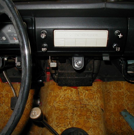 In Wendy Bagwell's famous story about "Ol' Ralph Bennett's Volkswagen," he said "the knobs didn't have no words on 'em. They all had pictures on them, but you couldn't make out what they meant. At least we couldn't". I still remember that exact same experience, even though I was only about 5 or 6 years old. I hadn't ever thought about what a picture of a windshield wiper might look like, and so I wasn't prepared for that day.Most of us kids learned to drive in our little Datsun. It was made for Japanese-size people, so you didn't have to be very tall to drive it. Later we bought a 1971 with factory A/C for my sister to drive. It looked identical to this 1970 model, but was blue. I drove it a lot more, and that's the one I really wish we had back. So for me, Godzilla is very nostalgic. Check out that groovy carpet. Yech. |