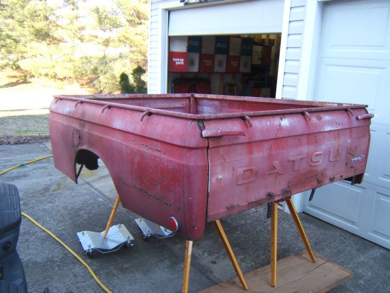 We've bought 50 Trans Ams, and 1 Datsun. This is the first Datsun 521 that I've found for sale in about a decade. I hope to be able to drive it regularly without too much work. It needs paint, but it's not rusty or beat up, so that shouldn't be much trouble. Well, fast forward nearly 8 years, and I did enjoy driving this truck nearly every day during that period. It's been a joy. When Hurricane Katrina struck, and gasoline went up to $4, I just stuck a tag on it and drove away with no other preparation. It gets about 26 or 27 mpg. I never get salt on it, but otherwise it goes every day. Maintenance to date has been that I purchased and wore out a set of high performance sumitomo tires that they don't make anymore, did a full brake overhaul, replaced the original shocks, and just recently replaced the plug wires, points, condenser, cap and rotor. No other repairs. Amazing, isn't it? I have decided the time has come for paint, in February 2013. First step was dismantlement to get everything cleaned up. The truck is incredibly solid. "Type R" emblem ads 20 hp. I bought it in Taiwan. I looked all over Taiwan for an LED animated light panel that looks like a Taiwanese walk/don't walk sign. I saw those in other people's cars, but I never could find one.