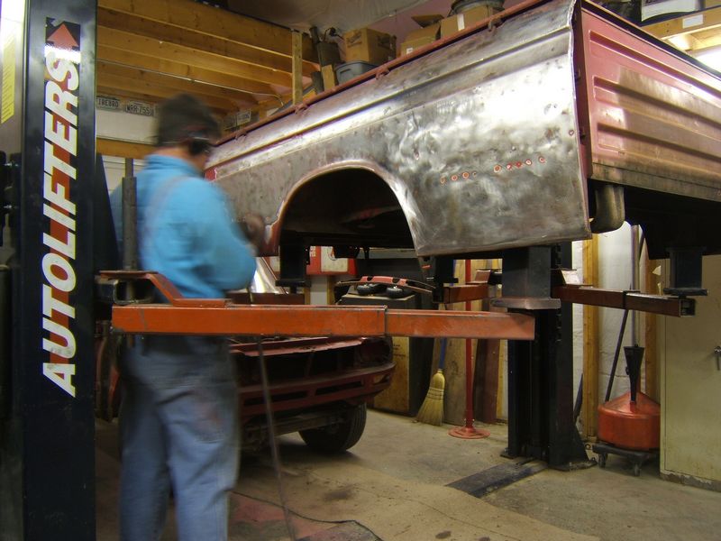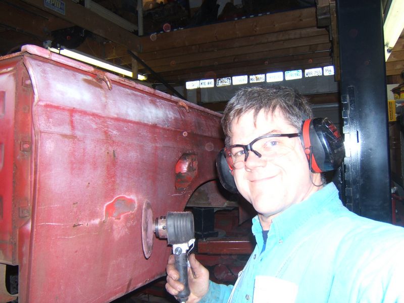 Using my lift for a rotisserie, I have started removing paint. I'm moving so fast I am just a blur.