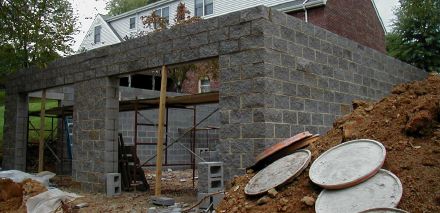 And It's Done!Well, the blocks at least. We had a big day on October 9 and ended it. There is some heavy hardware over those garage doors, and I am going to pour it full on concrete and make it even heavier. Split face blocks sure make for a pretty foundation in my opinion.On another note, my auto lift has come in. If it hadn't been for the rain, I might actually be ready for it right now. As it is, we've lost about a month. | ![]() |