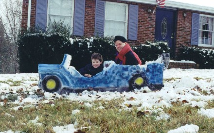 | We had what's known as an "old-fashioned cold winter", which put construction on hold. Can you guess the color of this snow jeep? It's 77 Trans Am Engine Block Blue. | ![]() |