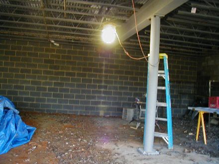Steel and ConcreteMy son took this picture, and I like the way it looks, so I am using it show show the view from below. This steel holds everything up.The beam is the kind of thing you'd rather not pay for new, if you know what I mean. Just to the right of the post you may be able to see three trusses close together. This structure will hold up the lift. |
