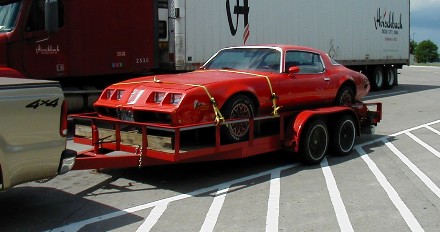 ![]() | It was raining in St. Louis, so I didn't get many pictures there, and I didn't get any before we loaded it. Here's a picture at a rest stop after we got out in the sun. In spite of its problems, it's a cute car. | |