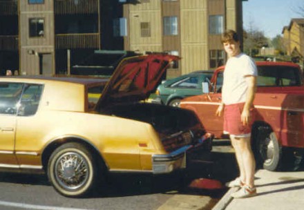 ![]() Here I am on my wedding day, in 1989, leaving for a honeymoon with that one classmate who was home when Mr. Bays broke down. This picture shows the last time I ever opened the door for her. Mr. Bays, now gas powered, is on his way to the airport again. We didn't get far, but this time the airline was at fault rather than Mr. Bays. | Mr. Bays's wide whitewalls have been scrubbed, and check out that one Cadillac hubcap. We're all clean and wearing our best in this shot.. It became obvious at about 150,000 miles that Mr. Bays was never going to actually quit, but he was just going to become sort of an eyesore. I saw this silver 1981 in somebody's yard for sale and eventually parked Mr. Bays and drove this instead. I bought it for about $500 and drove it 4 years. Another bad car gone good, this car had the first-year GM computer engine controls, with a computerized carburetor and a stepper motor controlling the idle speed. This whole setup worked flawlessly until I finally donated it to the Salvation Army. | I turned over a crock pot full of my famous queso dip in this car, and I couldn't get the smell out. No kidding. ![]() ![]() It was a sad day when my old friend went off to the crusher... | I wish I had some pictures of the inside, because it was just so gorgeous, even when it went off to the junkyard. The crusher guys got it off the trailer with a fork truck, skewering it through the (closed) moonroof. They weren't impressed. | ||||