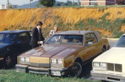 | I (Joe) have had every kind of bad car there is, and I've loved them all. I've had a 1983 Cadillac with the blockless engine, I've had two Volare station wagons (at least they were 4-speeds!), and yes, I've even had an Oldsmobile Diesel. My Olds Diesel was a 1979 Toronado. I bought my Toronado during my Sophomore year in college (1985) and drove it about 5 years. Not too many college students would drive a big sofa-on-wheels like this, so I felt the name "Mr. Bays" was appropriately stuffy (I'm a big car guy at heart). In those days custom tags in Virginia were $15, so naturally everybody had them (above). | |||||||