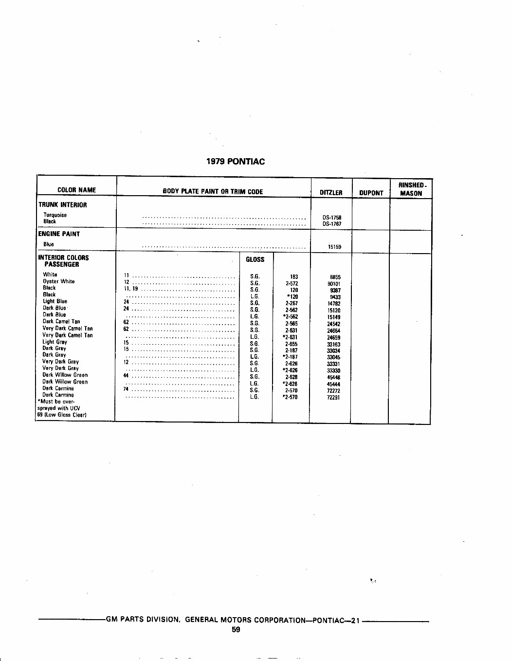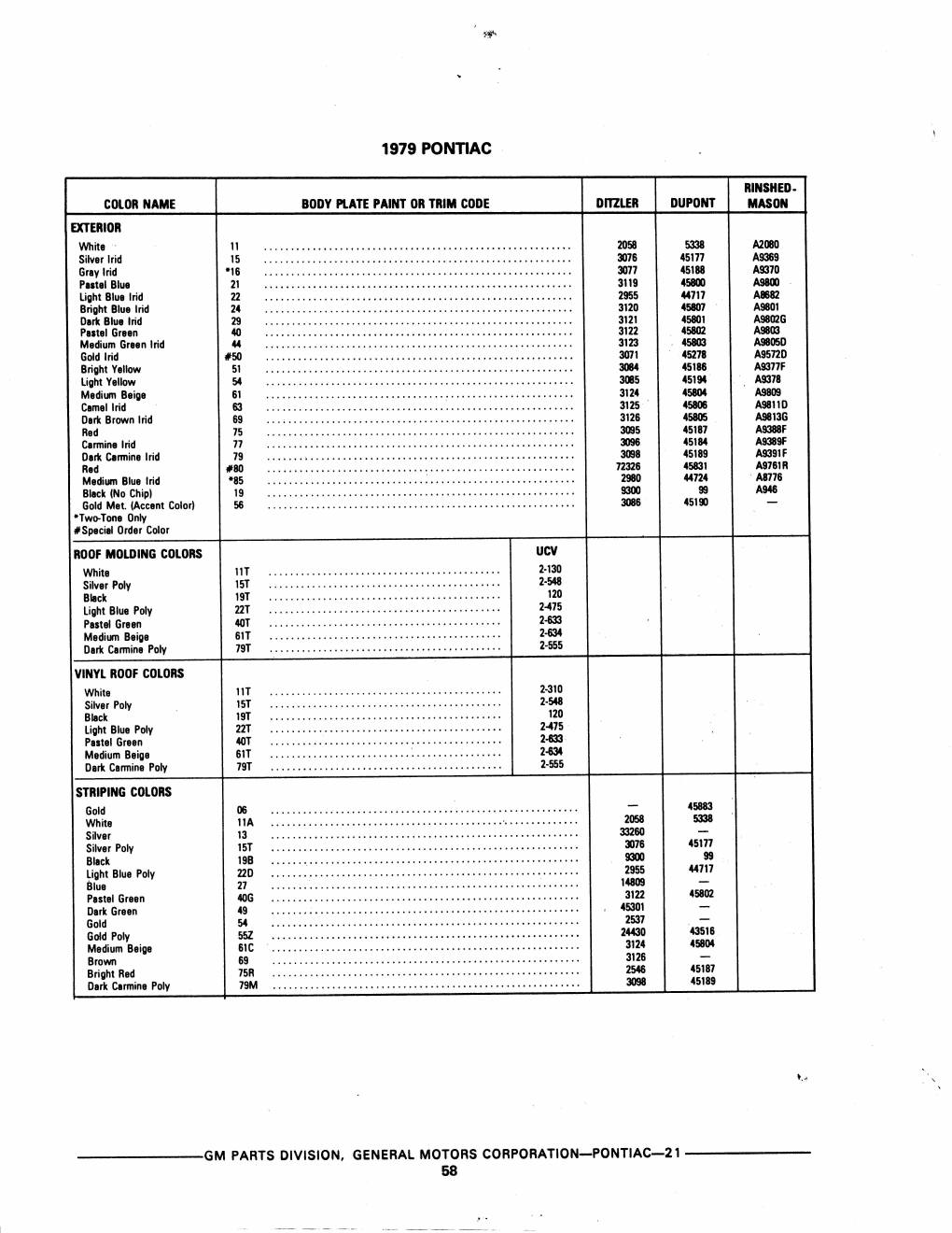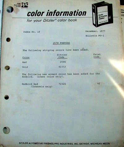 1978 Paint Code Update for PPG |