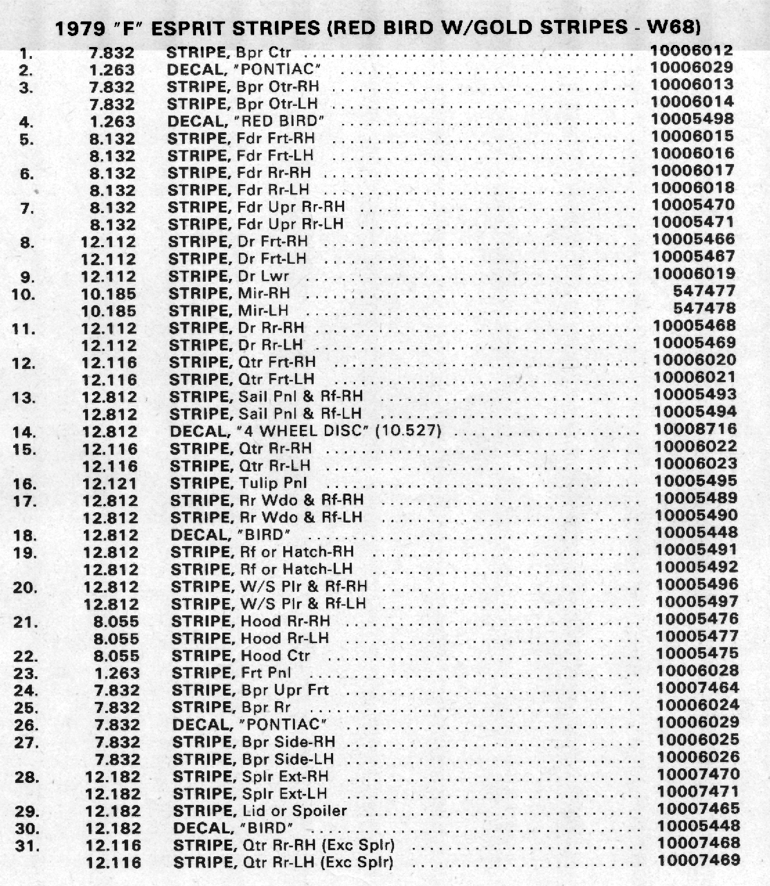 1979 Redbird Stripe Placement