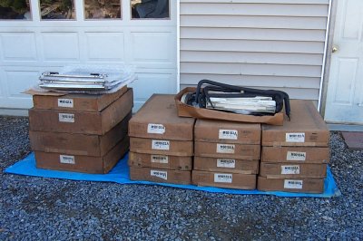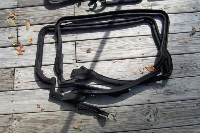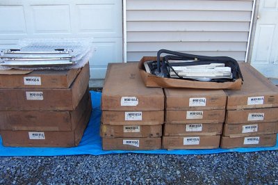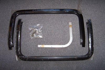 | The Grand Prix kit was quite a lot different. For one thing, you got new t-tops. It looks like, from this picture, that the G-body kit came in two boxes, one of which contained the t-tops. | The frames and weatherstripping were in this box, which isn't big enough for the t-tops. |