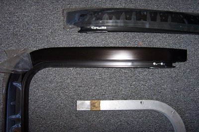 | New roof frames were required to mount the new design weatherstripping. These frames came in two colors. These are black, for a Trans Am Special Edition. | In this close view you can see the ends of the tops were beefed up underneath, unlike the first design frames. The hole in the car's roof had to be modified in this area. |
