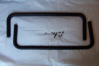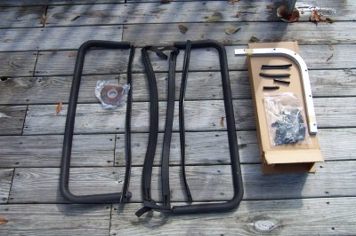 | Here's another view of the frames, along with their hardware and the new t-top plastic (which would have to be painted to match your interior) | The t-tops weren't assembled. The new clamping levers were also kept separate. |
