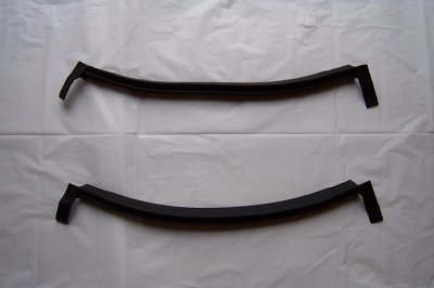 | The new roof rail weatherstripping has a channel in it for rain to run off. The channel is visible in this photo. Up until recently, there was still a considerable amount of this weatherstripping available from various people who sell NOS parts. | T-top weatherstrips were almost identical to the first design, but the angle of the end joints is different. |