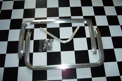 | Here's a nice big picture showing some of the G-body kit. These only came in one color. The design of the frames is similar to the F-body, but the shape on the end is very different because the G-body had a sharp crease along the roof rail. | |